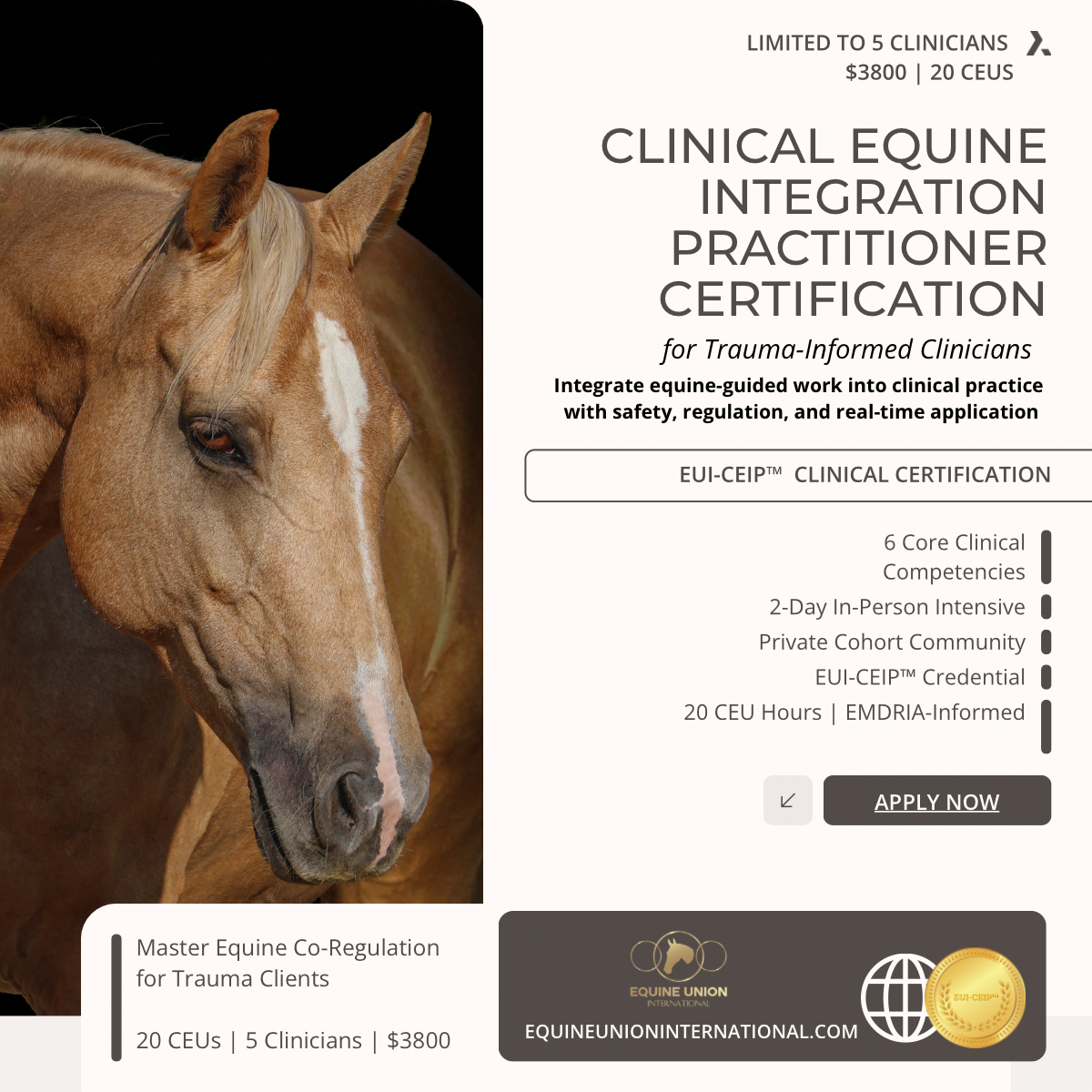 Through ethical, ground-based work with horses, clinicians learn to access and work with what is happening beneath the surface—not just what is being said.